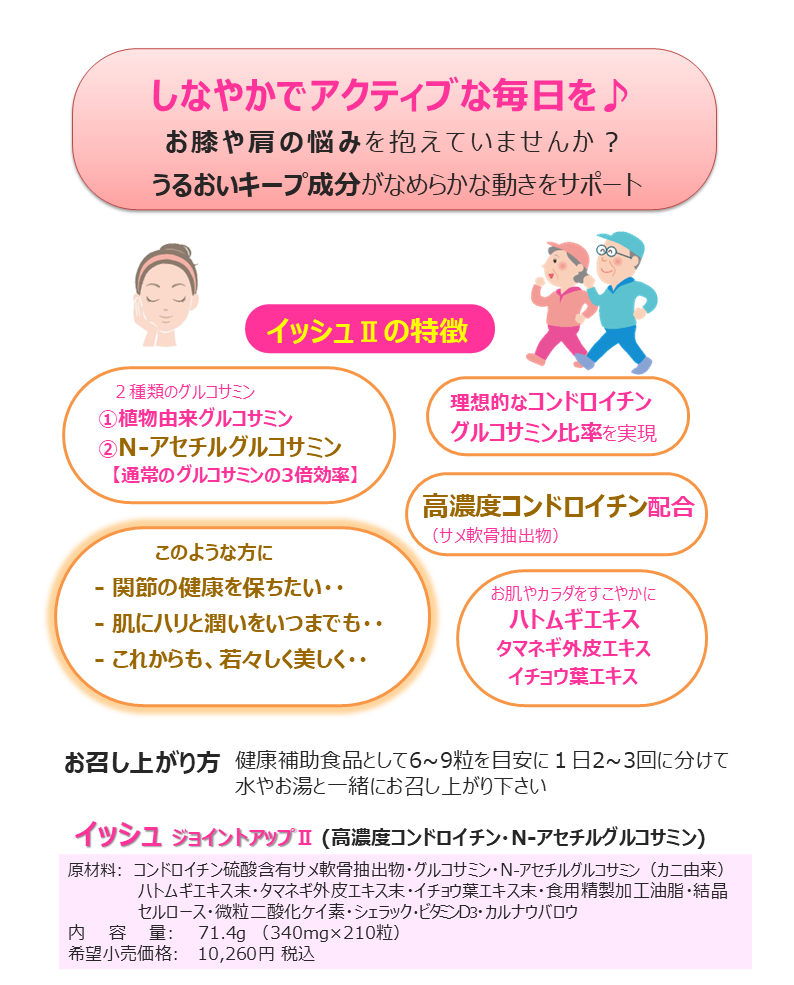 スムーズな動きのサポート成分がたっぷり入ったイッシュⅡ。一度試してみませんか?
