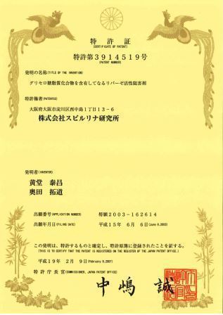 スピレンの原料スピルリナは国内外で特許を取得しています。