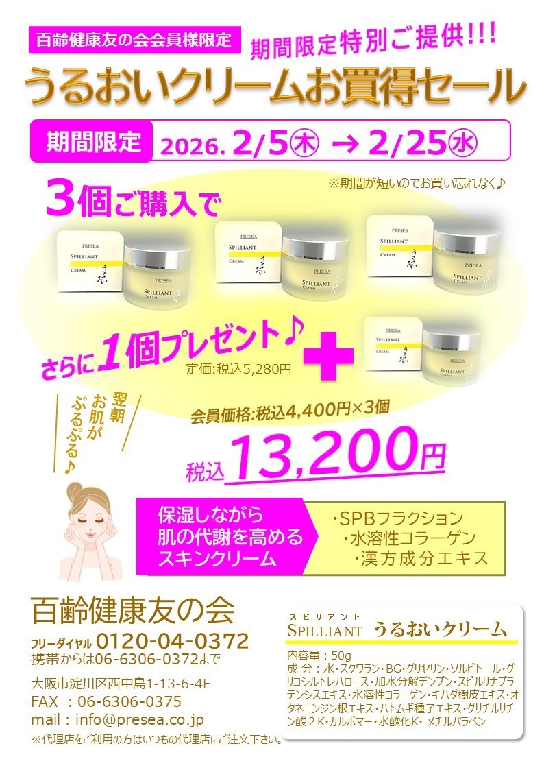 その際に「うるおいクリームお買得セール利用」とオペレーターにお伝えください。