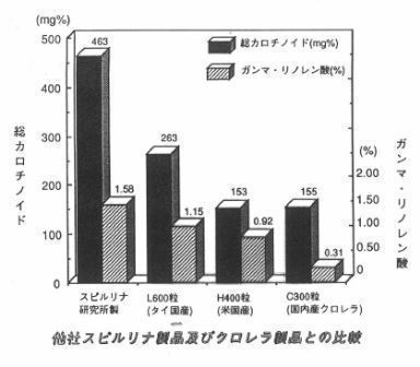 プロスタグランジンという局所ホルモンに変換され、炎症を抑えるなどの働きをします。スピルリナには母乳より高い濃度でガンマ・リノレン酸が含まれています。